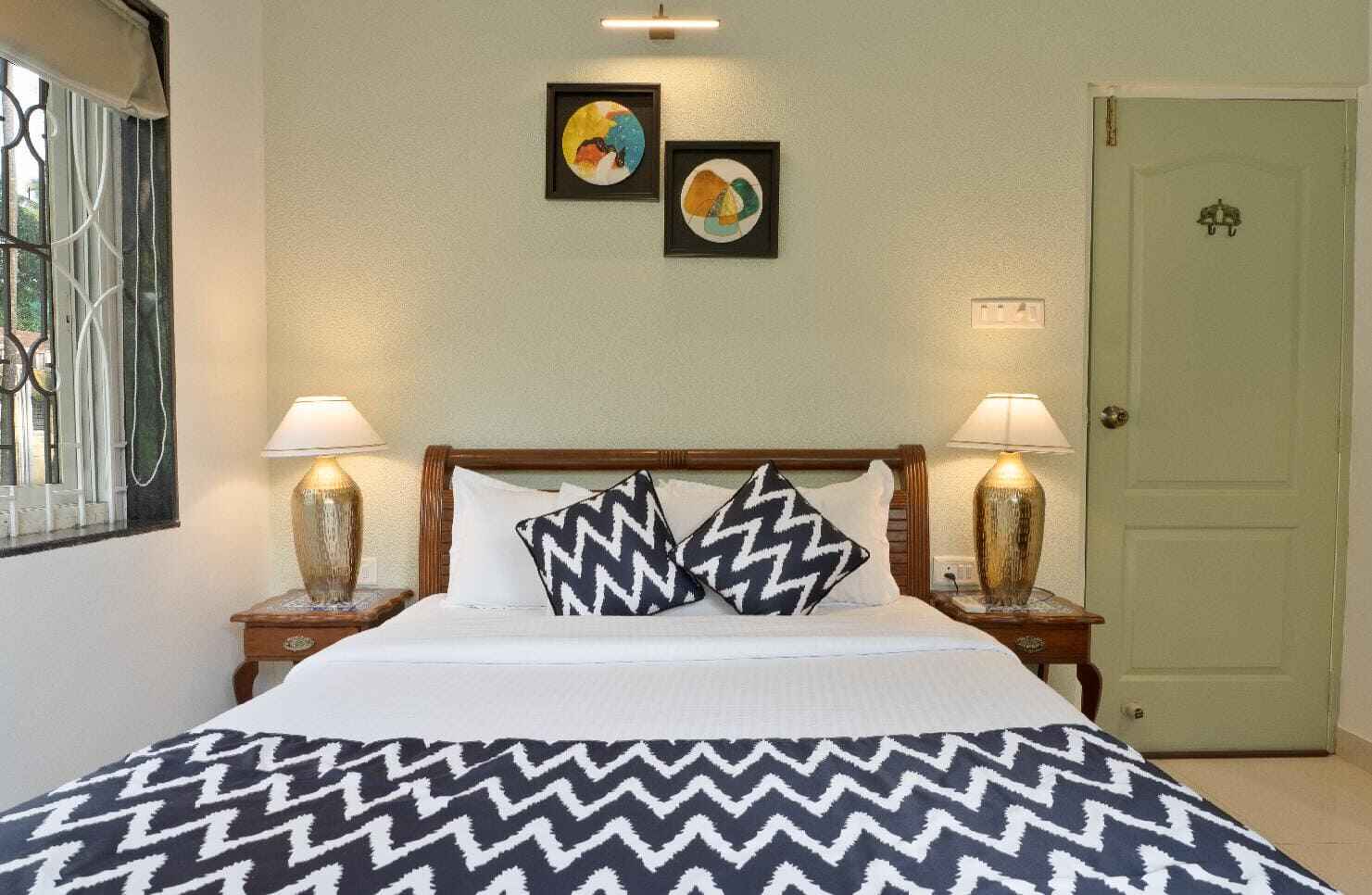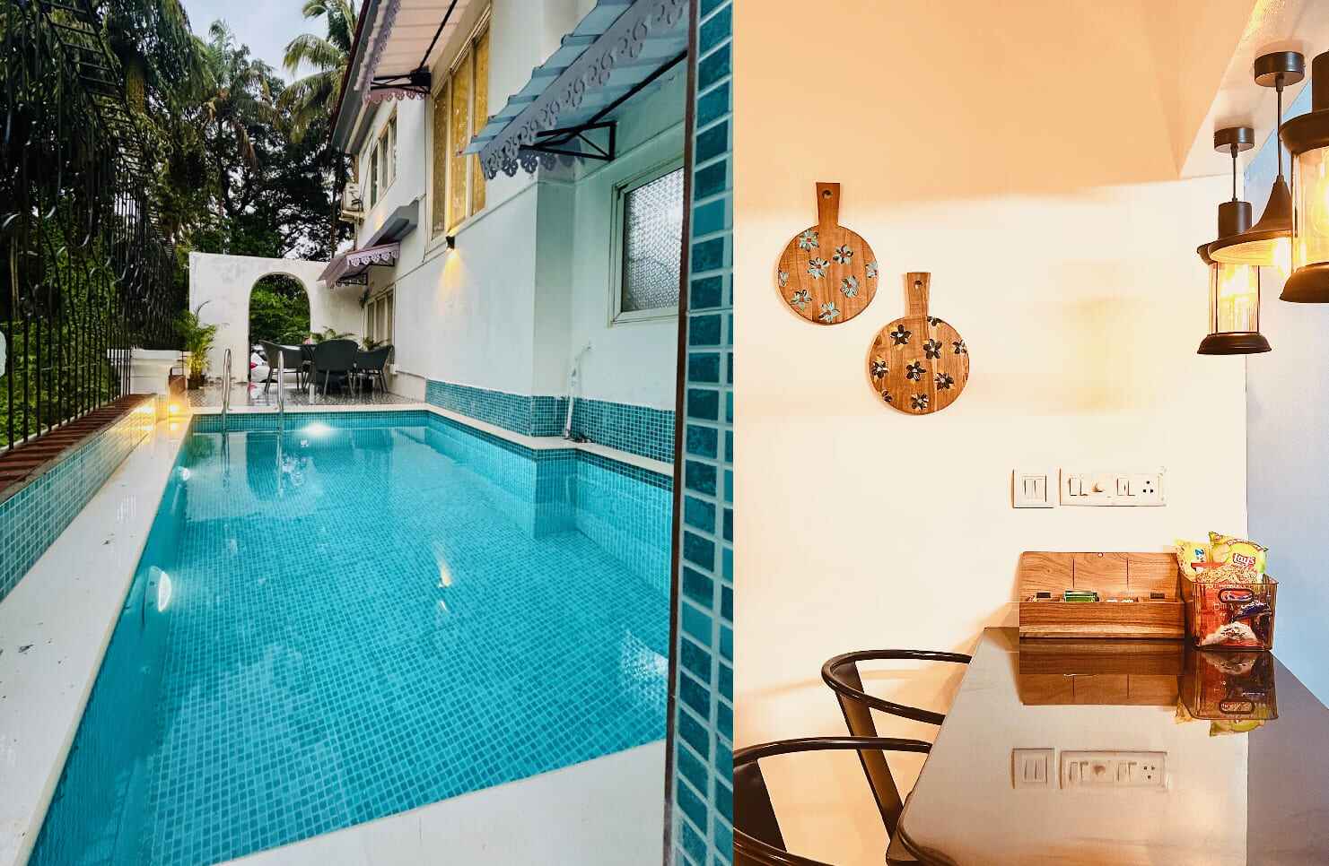Wake up to loads of sun and views of the sunrise. Sip your cuppa in the open spaces under the coconut trees or overlooking the greens or at your private swimming pool side, in the evening enjoy your drinks with loved ones in the indoor lounge or at pool deck or stroll to best cafes around. High standard linen and toiletries are provided to uplift the whole experience. Laze around or read a book while you relax in comfortable rooms. If you don't feel like moving out of the place cook your meals in well equipped kitchen or Zomato/Swiggy (24 hours) your favourite cuisine and enjoy the meal at home away from home.